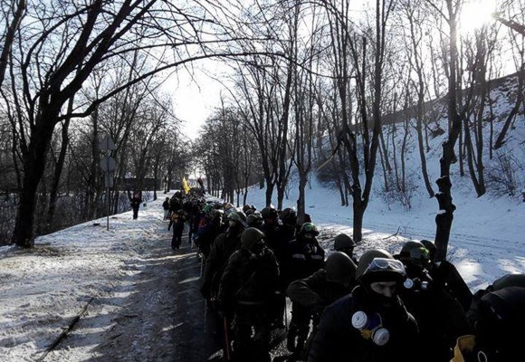 Избежав столкновений с милицией и участниками провластного т.н. Антимайдана, колонна протестующих спустилась на Парковую дорогу и вернулась на Майдан, обойдя стадион «Динамо» и баррикады на улице Грушевского.