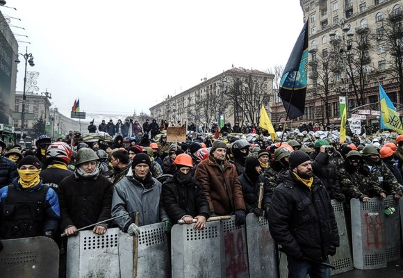 Защитники баррикад поют гимн Украины: