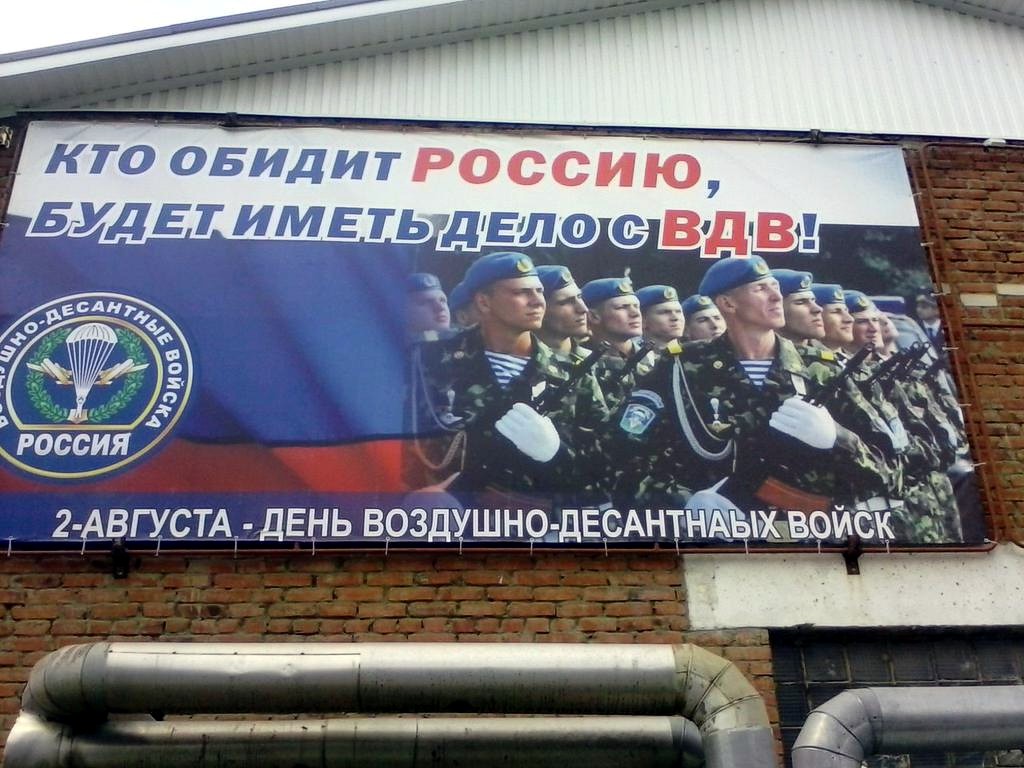 Билборды появились на российски улицах 2 августа. На поздравительном коллаже ко Дню ВДВ с подписью: «Кто обидит Россию, будет иметь дело с ВДВ!» — фото украинских военных. При этом, даже в тексте допущена ошибка.
