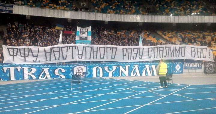 «ФФУ, в следующий раз сожжем вас», — написали болельщики киевлян на баннере.