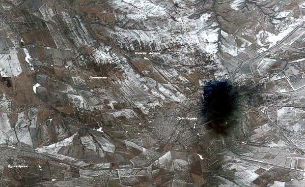 Дым от пожаров, вызванных артиллерийскими обстрелами Деабальцево.