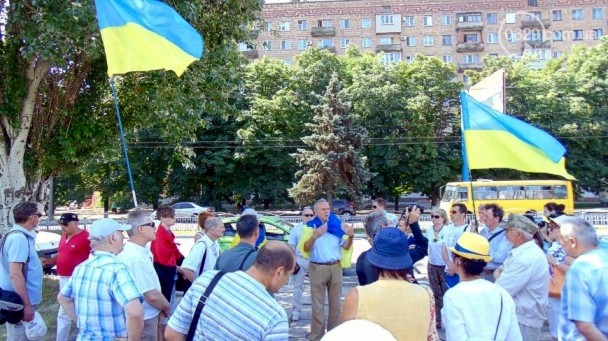 Местные активисты протестуют в связи с решениями «Нормандской четверки» по отводу украинских сил АТО из Широкино, запланированных на 3 августа, сообщает местное издание 0629.