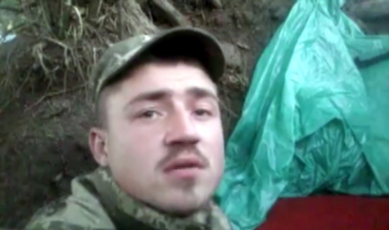 Непосредственно во время сьемки видео со стороны боевиков прилетел еще один снаряд, от взрыва которого украинского бойца накрыло землей.