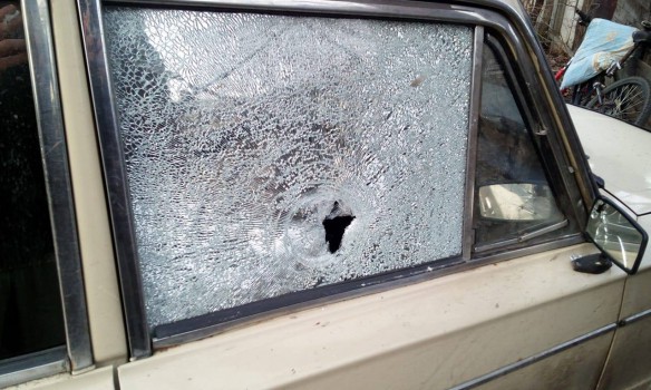 По его словам, автомобиль был обстрелян из стрелкового оружия, но к счастью, водитель авто остался жив.