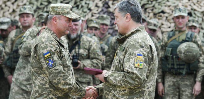 «Принимал активное участие в АТО, в сложных условиях 2014-2015 годов сначала был начальником штаба, позже возглавлял Антитеррористическую операцию, обеспечивая в самые сложные моменты эффективные действия по организации обороны и отпору наступления российских войск», — отметил Порошенко.