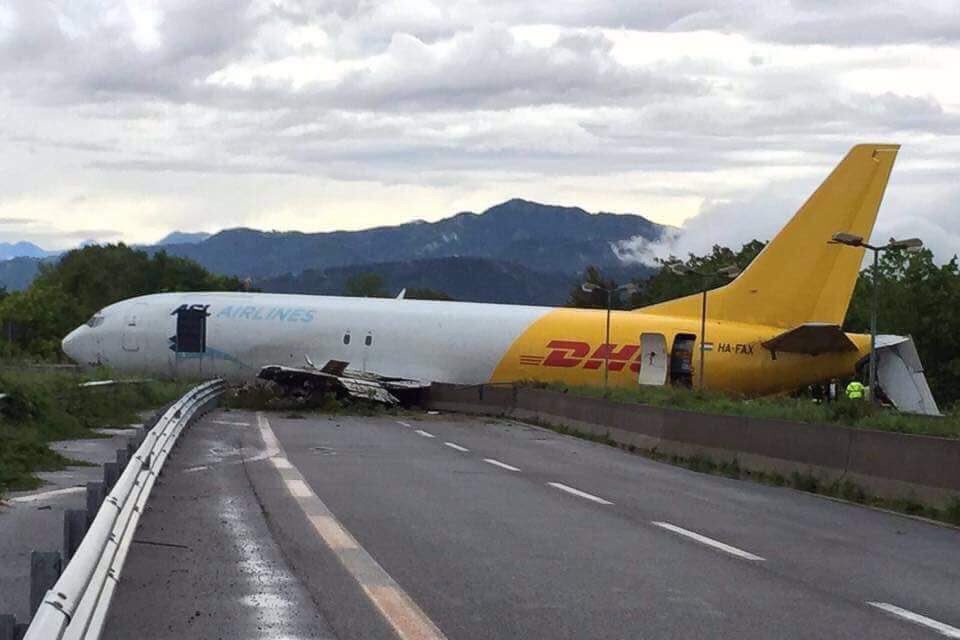 В Италии грузовой самолет выкатился со взлетной полосы на автодорогу