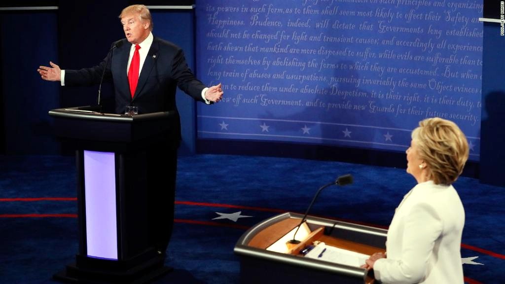 Дональд Трамп и Хиллари Клинтон во время дебатов.