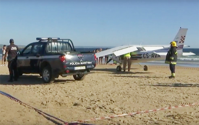 На видеозаписи, показанной португальскими телеканалами, виден маленький самолет, стоящий на песке, окруженный отдыхающими и сотрудниками экстренных служб. Одно крыло летательного аппарата выглядит перекошенным.