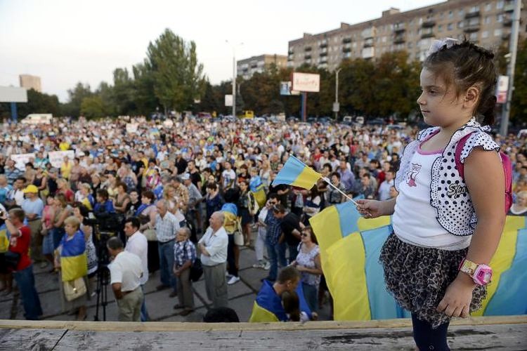 Митинг в Донецкой области с просьбой о выводе российских войск. 28 августа 2014.