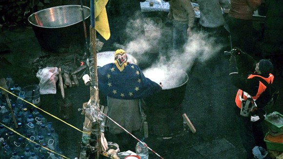 Я долго не мог понять, с чем у меня ассоциируется Майдан. Это и не революция, и не беспорядки, и — уж тем более — не Болотная. Не «оккупай». Это и не война. И не протест как таковой — в его чистом виде. И даже не противостояние с властью, несмотря на баррикады и блокаду площади военными грузовиками. Да, и протест, и революция — все это здесь есть, но это все — вместе, такой бульон из социальных и политических явлений, понемногу от каждого. Ни одно из которых не является превалирующим и не может характеризовать Майдан полностью.