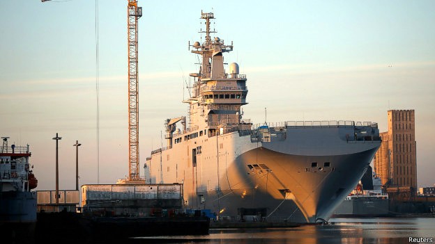 Господин Олланд назвал условия передачи России вертолетоносца — перемирие и политическое урегулирование ситуации на востоке Украины. Окончательное решение о передаче кораблей перенесли на конец октября.