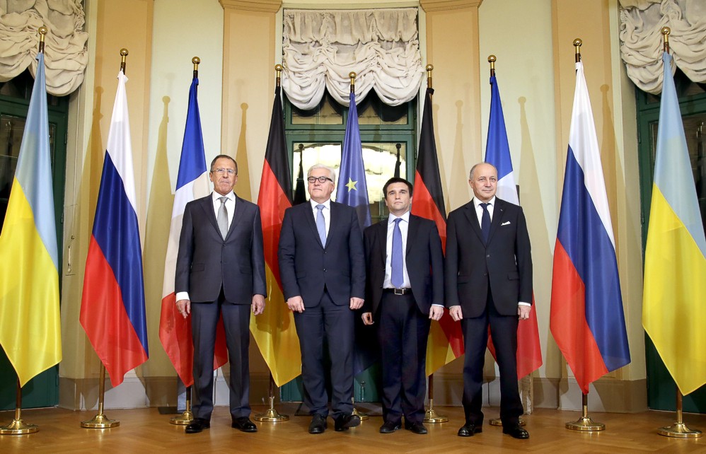 Министр иностранных дел Германии Франк-Вальтер Штайнмайер встретился с министрами иностранных дел Франции Лораном Фабиусом, Украины Павлом Климкиным и России Сергеем Лавровым, чтобы предпринять еще одну попытку урегулирования украинского конфликта, который начался почти год назад и вызвал самый серьезный дипломатический кризис между Россией и Западом после падения железного занавеса. Министры не сумели найти достаточной общности взглядов для проведения в четверг в столице Казахстана Астане мирного саммита, на который возлагала надежды Украина.