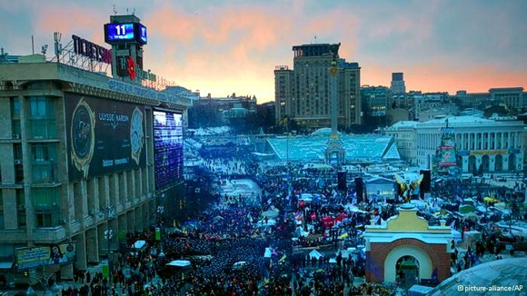 В перерывах между политическими призывами из громкоговорителей и со сцены звучит ритмичная музыка, народ подпевает и танцует, пытаясь согреться на морозе. Звучат призывы к Евросоюзу ввести персональные санкции против Виктора Януковича и его окружения — блокирование счетов в банках и запрет на въезд в ЕС. Депутат Леся Оробец от партии «Батькивщина» обратилась на английском и украинском языках к лидерам ЕС: «Европа, услышь нас, мы не хотим назад в Россию».