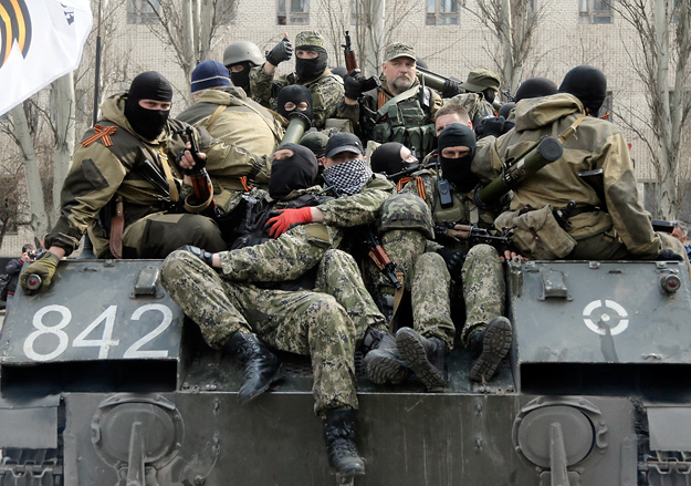 Высокопоставленные украинские и западные чиновники настаивают, что эти вооруженные люди — россияне. По словам первого вице-премьера Украины Виталия Яремы, у Киева есть доказательства, что захватившие Славянск и Краматорск вооруженные активисты являются «военнослужащими российского 45-го парашютно-десантного полка». Но Россия категорически отрицает, что ее военнослужащие принимают какое-либо участие в волнениях.