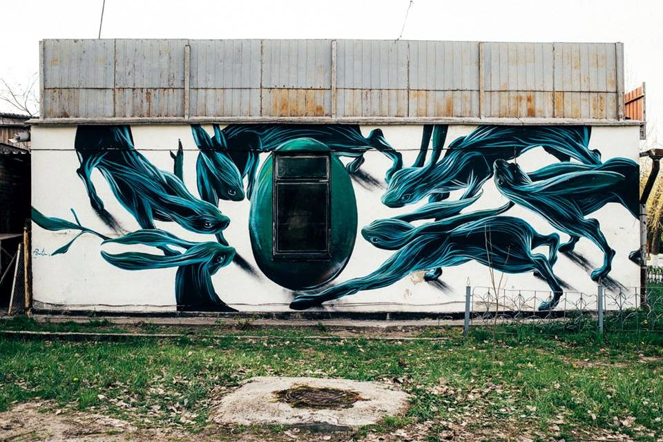 «Художник сделал практически невозможное — создал мурал всего за один день, – рассказывает куратор проекта Дмитрий Палиенко. — Было очень интересно наблюдать за творческим процессом. Это какая-то непонятная химическая реакция, когда на первый взгляд мрачные фигуры вдруг оживают и превращаются в волшебную картинку с глубоким смыслом».