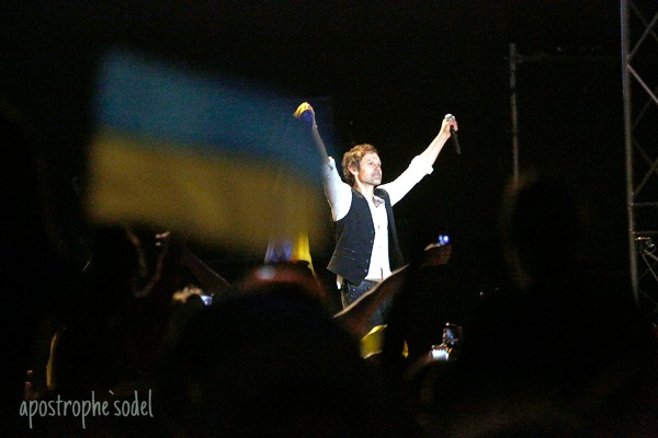 В начале концерта, Святослав Вакарчук взял у зрителей, стоящих около сцены, флаг Украины и повесил на микрофон.