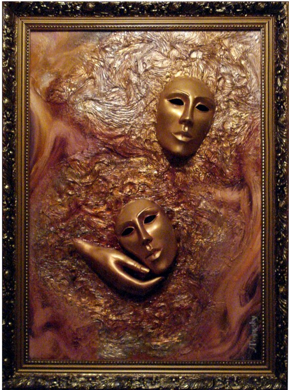 Поставив перед собой весьма непростую задачу — передать нам нечто «с той стороны» — Антон просто был вынужден выходить за рамки используемых обычно в изобразительном искусстве техник и материалов. Так, большая часть представленных на выставке работ Погарского может быть отнесена не к картине, а скорее к сочетанию картины и барельефа.