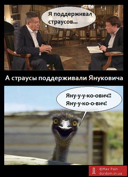 В частности, пользователей позабавили ответы экс-президента на вопросы о зоопарке и знаменитых страусах в Межигорье. «Чо плохого, что я поддерживал страусов? Они просто жили там. Мне что, нужно было закрыть глаза и ничего не видеть?..» — с недоумением сказал Янукович.