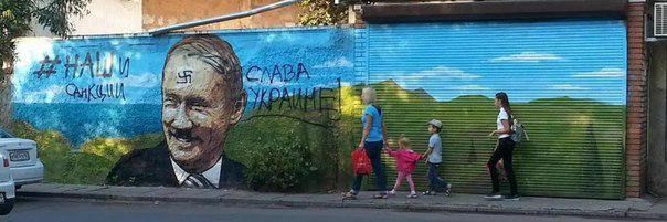 В Крыму на граффити Путину дорисовали гитлеровские усы