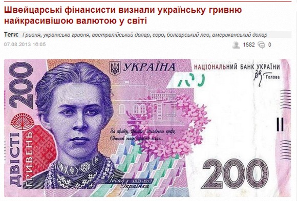 Там же был приведен рейтинг пяти самых красивых банкнот в мире: украинская гривна, австралийский доллар, евро, болгарский лев и американский доллар.