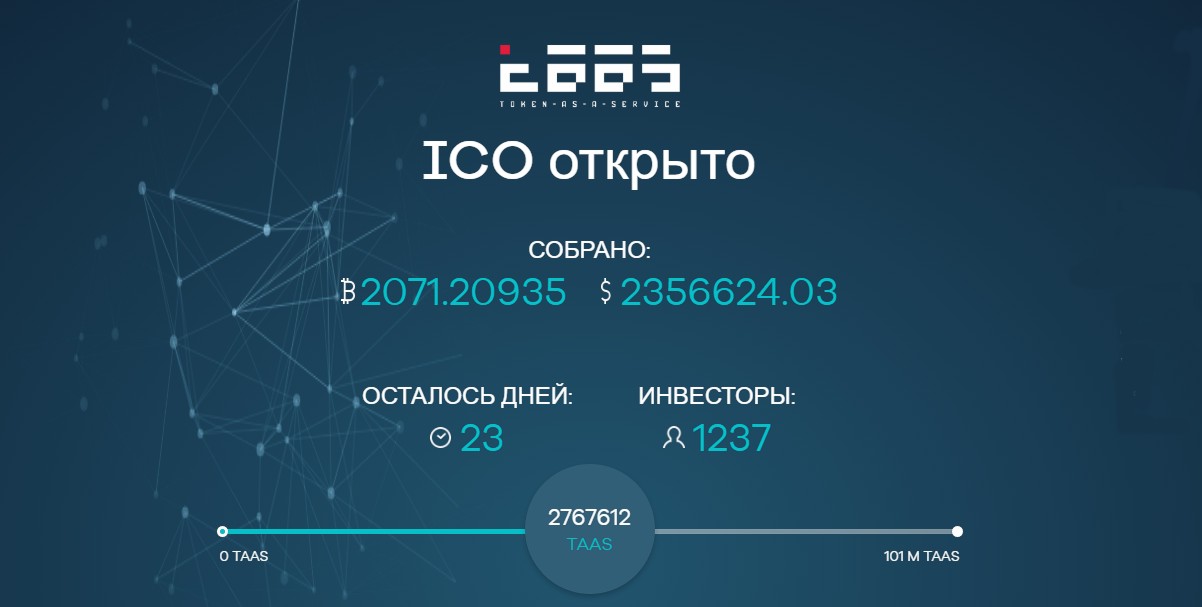 За это время планируется разместить 101 миллион токенов (долей) TaaS. Стоимость одного токена — $1. Все непроданные токены будут уничтожены, выпуск новых не планируется. Таким образом, на рынке останется фиксированное количество токенов TaaS, которое определится по результатам ICO (Initial Coin Offering).