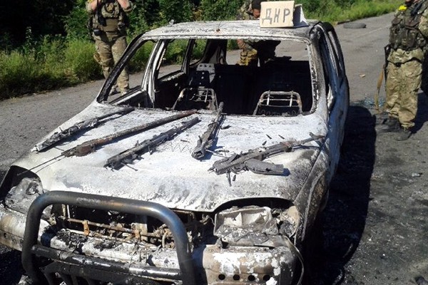 В автомобиле сдетонировал боевой комплект, в результате чего авто загорелось. Водитель и два пассажира выскочили из транспортного средства и сразу же были задержаны военнослужащими Нацгвардии.