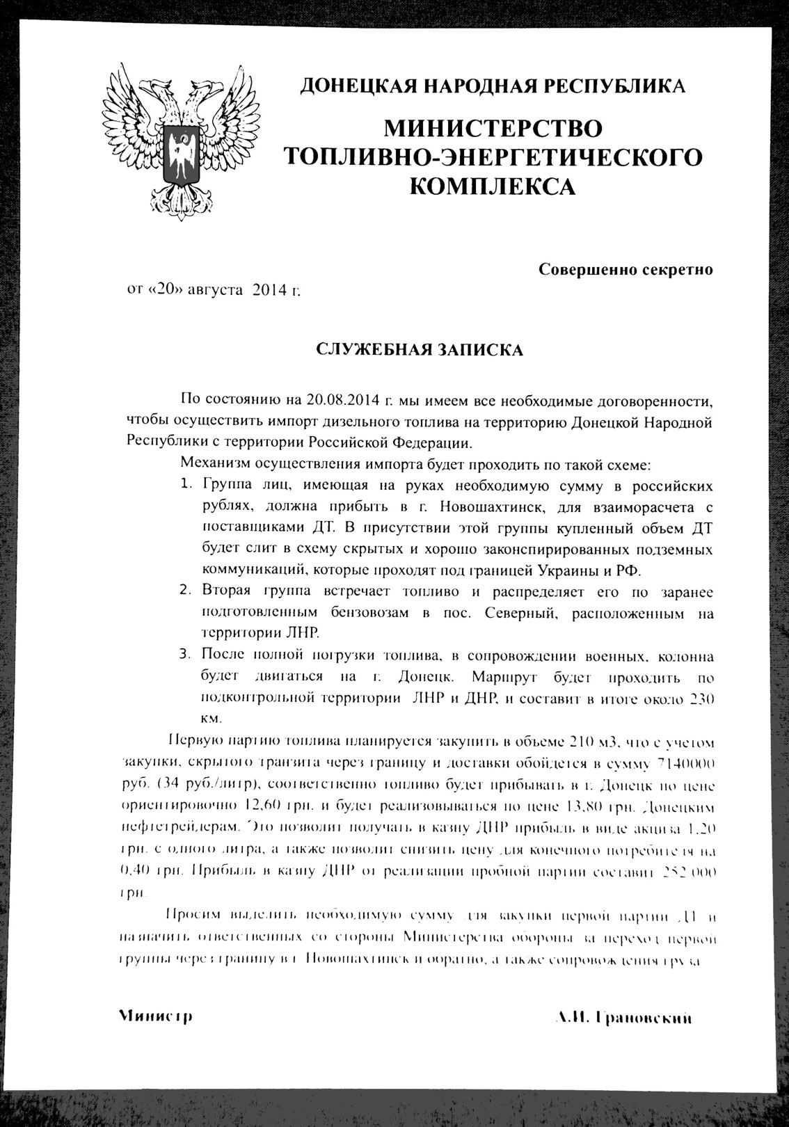 В одном из файлов описаны способы переправки топлива с территории Российской Федерации на восток Украины, в другом говорится о создании информагентства и сборе компромата на украинских политиков, в частности, — на нового главу Луганской ОГА Геннадия Москаля.