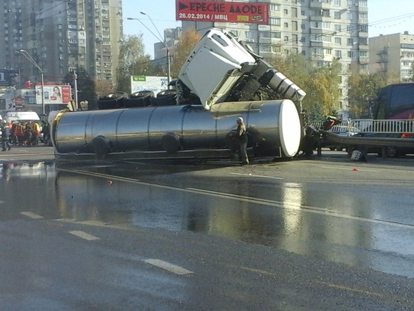 В Киеве перевернулась автоцистерна: на проезжую часть вытекло около 20 тонн подсолнечного масла
