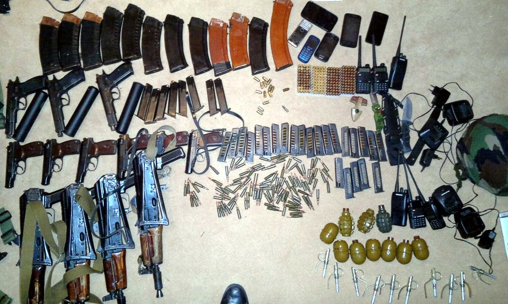 По данным ведомства, злоумышленники были вооружены автоматическим и стрелковым оружием. В ходе их задержания сотрудники СБУ изъяли из тайника целый арсенал оружия, в частности, 4 автомата Калашникова, 10 пистолетов и большое количество патронов к ним.