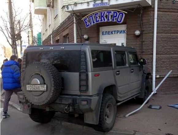 В Киеве Hummer с российскими номерами въехал в витрину магазина