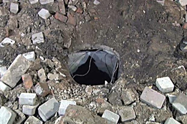 Ка говорится в сюжете, неизвестные, подняв чугунный люк, бросили взрывное устройство в колодец телефонной связи у главных ворот базы.