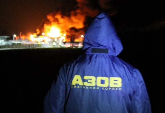 «Азов» взял под охрану периметр пожара на нефтебазе под Киевом