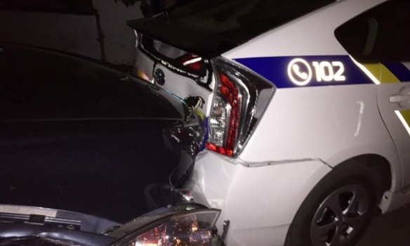 В ночь на пятницу, 24 июля, киевлянин на чужом автомобиле устроил гонки с двумя экипажами патрульных полицейских, в итоге протаранил их машины.