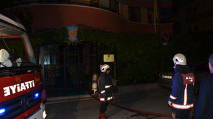 По информации издания, пожар начался в 21:30 в рабочем кабинете на 2-м этаже 4-этажного здания посольства Украины в Анкаре.