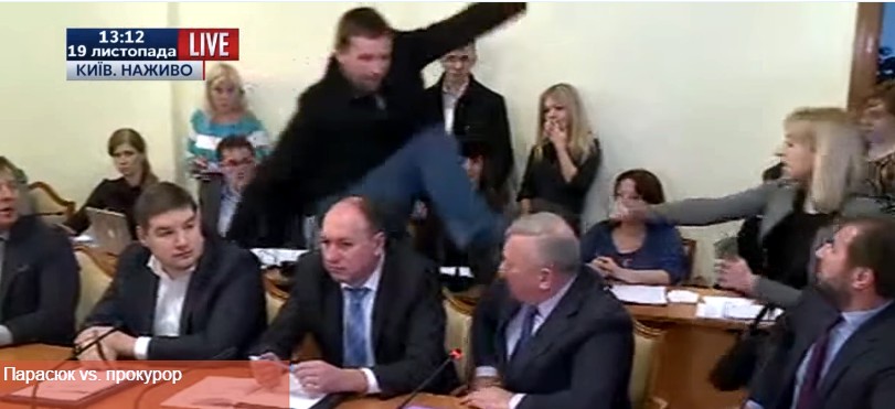 В четверг, 19 ноября, на заседании комитета Верховной Рады по вопросам предотвращения и противодействия коррупции внефракционный народный депутат Владимир Парасюк ударил ногой в лицо заместителя руководителя отдела «К» СБУ Василия Писного.
