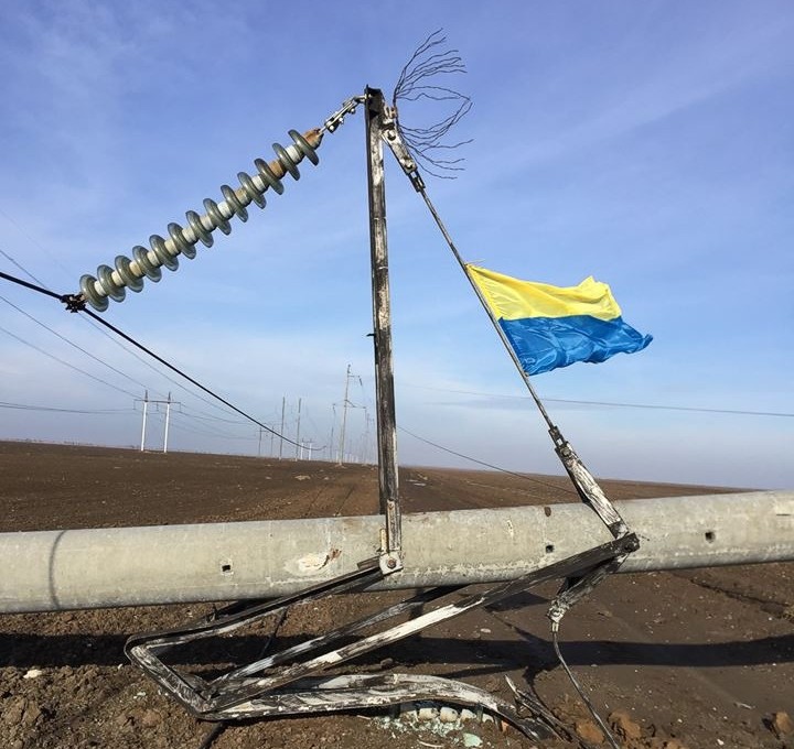 У Крыма подорвали ЛЭП и водрузили флаг Украины: опубликовано фото