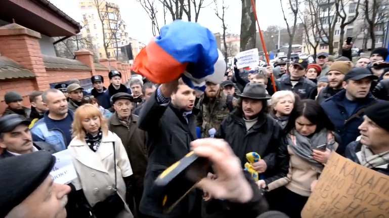Парасюк растоптал и сжег флаг РФ на территории российского консульства