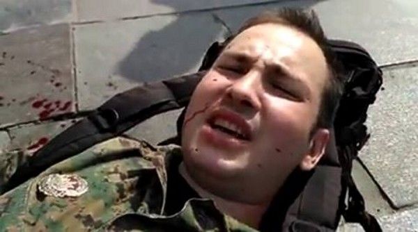 Видео нападения на добровольца ОУН разместили на странице сообщества Евромайдан в Facebook. Камеры наружного наблюдения зафиксировали, как мужчина в камуфляжной форме спускается в подземный переход, а сзади к нему подбегает неизвестный и несколько раз ударяет его ножом в область живота.
