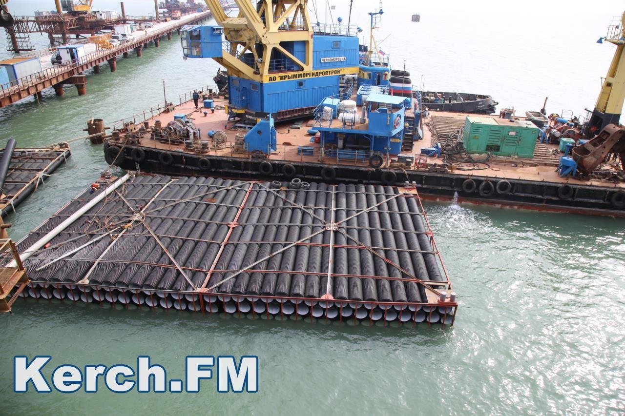 В пресс-службе Керченского моста пояснили, что в ночь на 19 марта шторм помешал установке временной волнозащитной конструкции, состоящей из легких гофрированных труб, объединенных в металлические рамы.