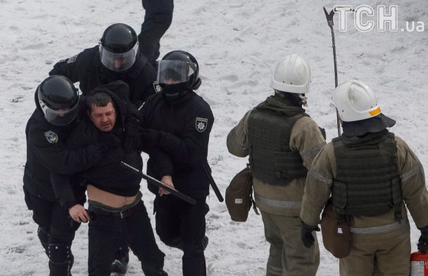 Сначала полицейские оттеснили участников акции от ограждения, установленного возле здания парламента, затем отобрали у митингующих шины. Тогда несколько участников акции бросили в сторону правоохранителей дымовые шашки. Кроме того, правоохранители начали наступление на палаточный городок, установленный возле ВР. Активисты вышли из палаток и начали обороняться палками, бросать в полицейских бутылки.