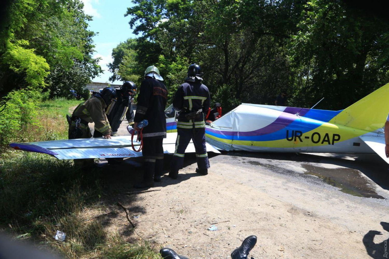 В МВД уточнили, что происшествие случилось около 12 часов. 15 мин. во время проведения тренировочного полета. Речь идет о самолете Y1 «Дельфин» Одесского авиационного завода.
