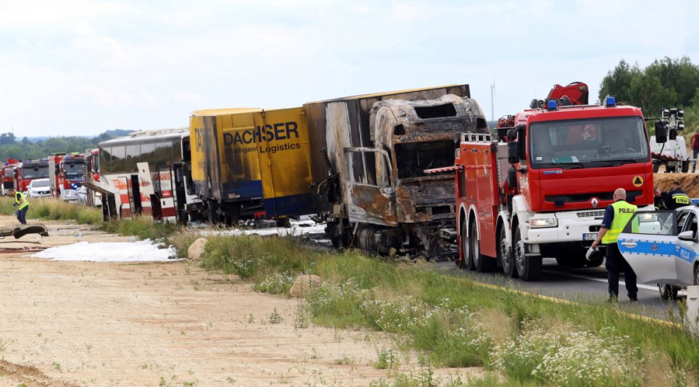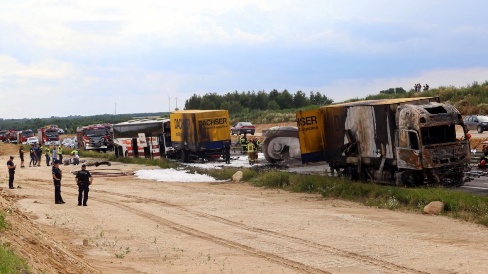 Как ранее сообщило «Польское радио», 2 июля в Польше возле города Богуславице Силезского воеводства произошло ДТП с участием украинского пассажирского автобуса, который ехал из Тернополя в направлении Варшавы: он столкнулся с автоцистерной и грузовым автомобилем вблизи города Богуславице Силезского воеводства. Один из грузовиков полностью сгорел.