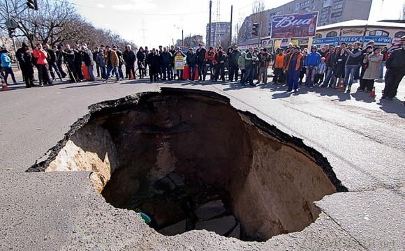 Вчера, 17 марта, около 13:00 в Одессе на углу Люстдорфской дороги и улицы Левитана образовался огромный провал.