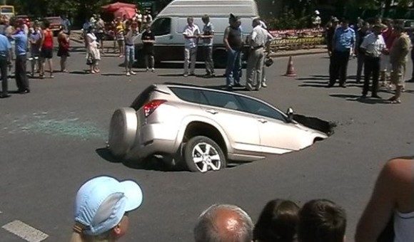 Как сообщили очевидцы на сайте autonews.autoua.net, в провал едва не упал «Mercedes-Benz S63 AMG». Водитель авто по имени Джамиль успел остановить машину и выскочить из неё. Сам автомобиль опустился в провал передним колесом.