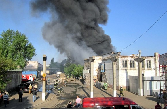 в понедельник, 6 мая, около 7:00 в Киеве на улице Инженерной,1 возле станции метро «Выдубичи» загорелся склад вторсырья.
