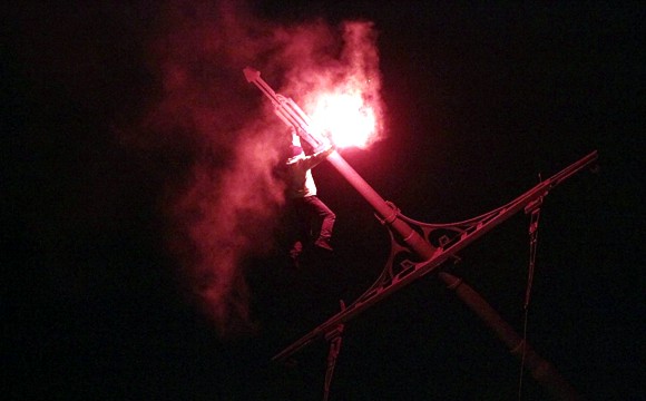 По рассказам очевидцев, перед разводом моста мужчина спрятался за перила и остался незамеченным охраной. Спустя час после развода Троицкого моста он забрался на фонарный столб в высшей точке моста, зажег красный файер и провисел с ним несколько минут под аплодисменты и свисты многочисленных зрителей, которые пришли на разводку мостов на Неве.