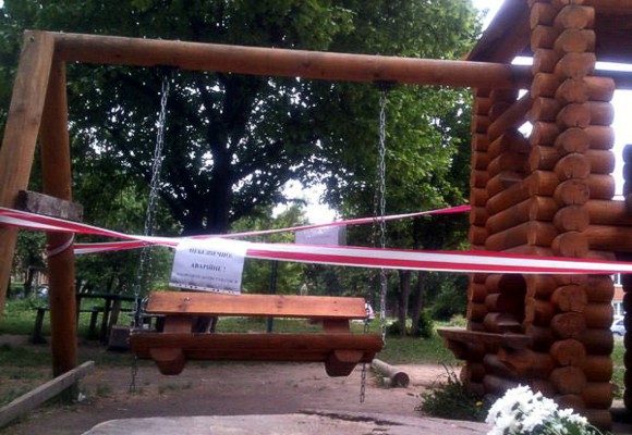 Жители близлежащего дома рассказали, что вечером в субботу, 11 мая они вызывали милицию, потому что пьяные взрослые катались на детских качелях и, тогда уже было видно, что верхний брус плохо закреплен и качели находятся в аварийном состоянии. Но конструкцию подремонтировали и утром в воскресенье качели выглядели нормально.