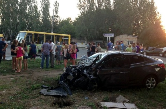На перекрестке Бериславского шоссе и улицы Черноморской легковой автомобиль Hyundai на полном ходу протаранил маршрутку с пассажирами, сообщили в пресс-службе ГУ МЧС по городу Херсону и Херсонской области.