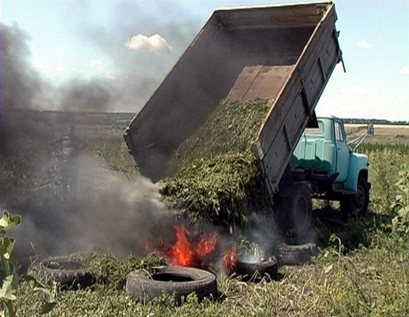 Выращивало запрещенную коноплю одно из обществ с ограниченной ответственностью. Во время проверки его деятельности сотрудники УБНОН установили, что должностные лица данного предприятия, не имея квот на культивирование растений, содержащих наркотические и психотропные вещества, самовольно засеяли поле коноплей. При этом огромную плантацию даже не оборудовали необходимыми средствами охраны.