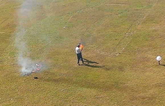 Как сообщили в пресс-службе УМВД Украины в Закарпатской области, сегодня утром на площади Народная под зданием ОГА появился неизвестный мужчина, держащий в руках бутылку с какой-то жидкостью. Подошедший к нему младший сержант милиции Черленяк, прибывший по вызову в здание ОГА, поинтересовался у гражданина, что он здесь делает. Однако вместо ответа мужчина отошел в сторону, а потом облил себя жидкостью из бутылки и поджег зажигалкой.